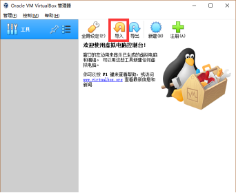 1) 打开VirtualBox,点击“导入”