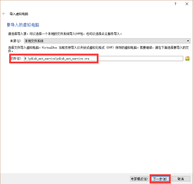 2) 选择镜像文件(ova格式文件)路径,点击“下一步”
