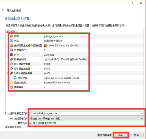 3. 加载预览服务镜像( ydisk _ ext_service.ova )