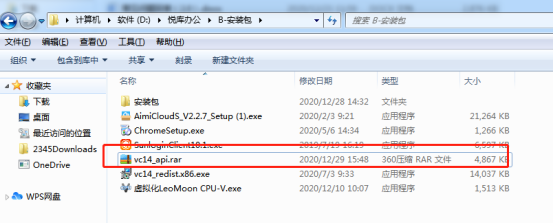 方法一 类似丢失dll的问题都是缺少运行时库导致的,我们的安装包中自带运行时库。