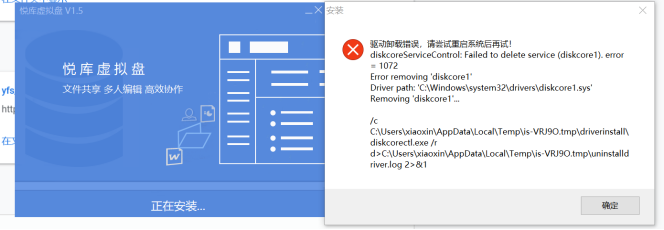 解决方法:把虚拟盘安装包放到D盘或者F盘,不要放在桌面,再安装试一下。