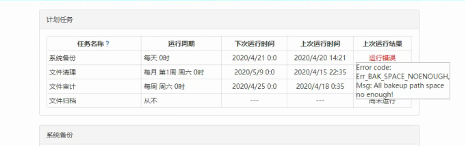 备份盘空间不足,增加备份盘。