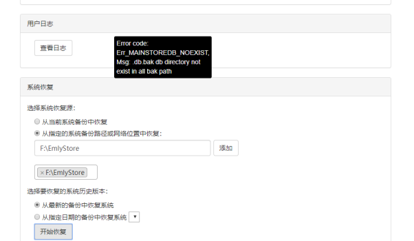 存储目录还原数据只需把存储目录放到现在的存储路径下,备份目录需要通过系统恢复功能恢复。