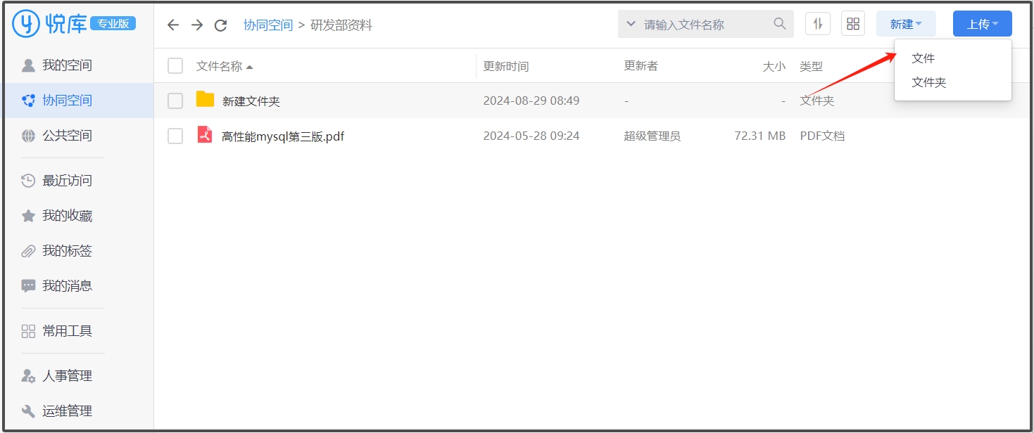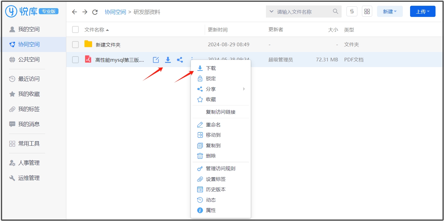 悦库企业网盘“文件上传和下载”功能介绍