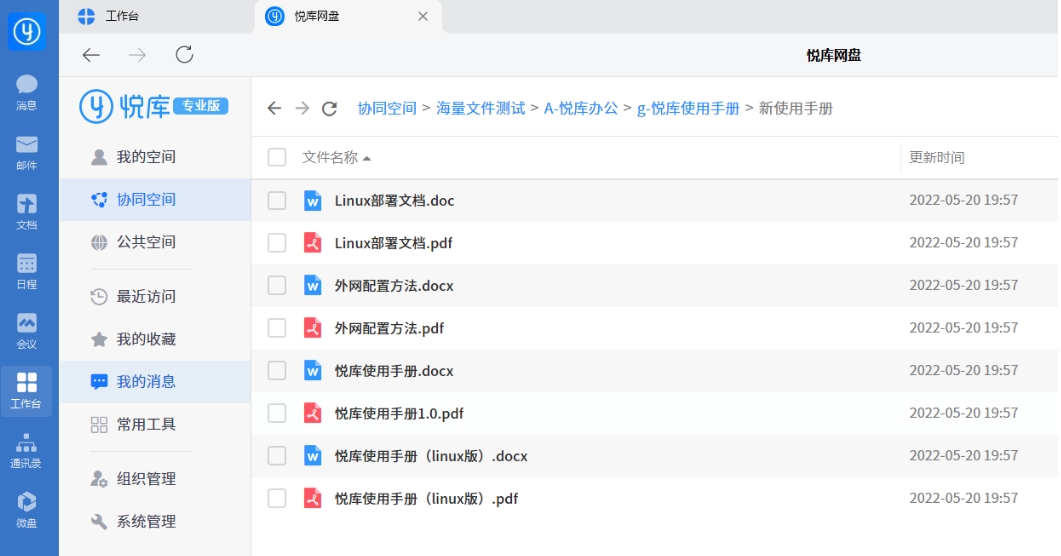 在悦库企业网盘中,共享文件夹内成员可按需自主访问并获取所需资料。平台提供共享文件夹创建、文件安全外链等功能,构建快速信息共享通道,确保公司最新动态实时同步至各相关部门,保障团队信息高度一致。同时,支持多人同时在线编辑同一文件,编辑内容实时呈现,员工间可相互查看修改进度,有效避免编辑冲突。此外,灵活的多层级权限设置,为共享文件筑牢安全防线,在保障协作效率的同时确保数据安全。
