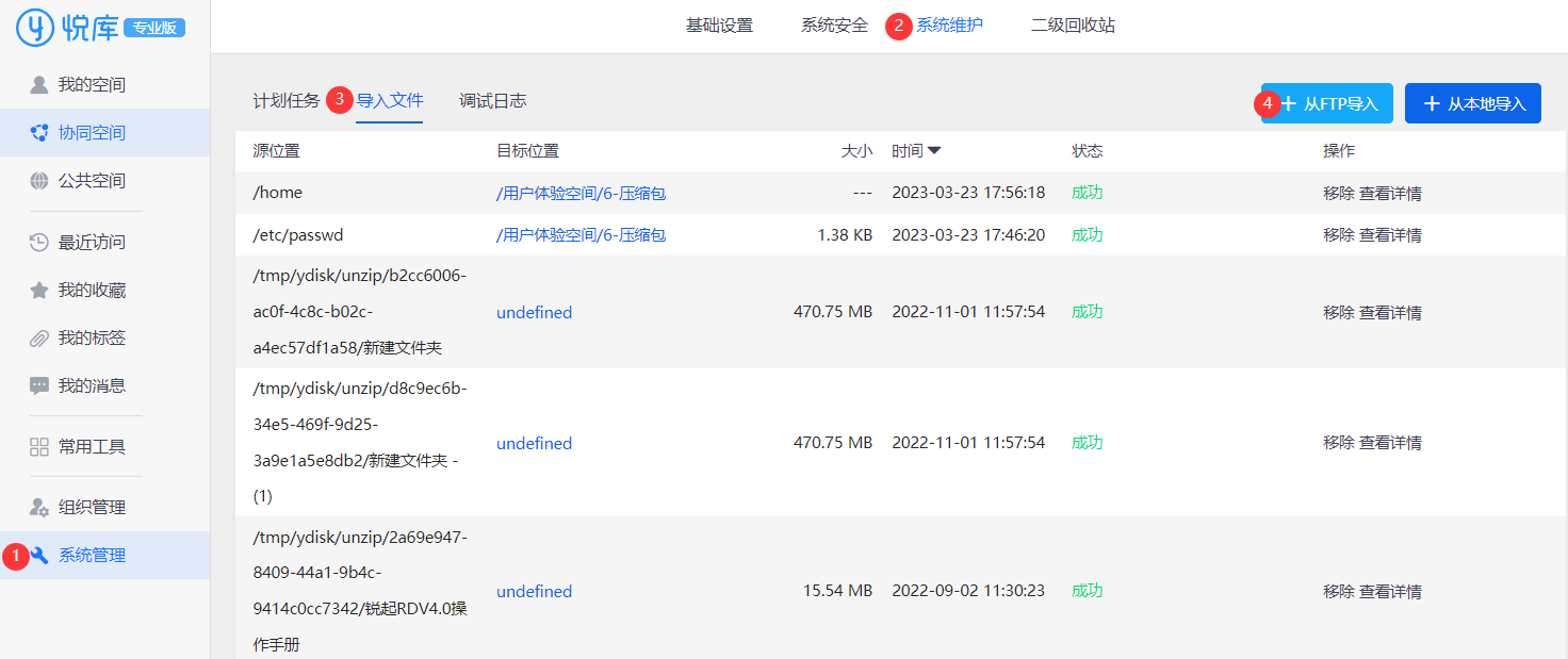 悦库企业网盘导入文件功能