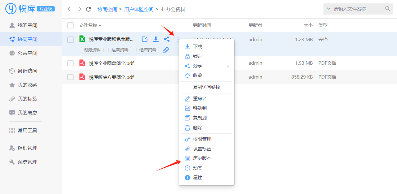 在悦库文档管理系统中,历史版本功能是一项非常重要的特性,它允许用户跟踪文件的变更历史,包括每次修改的时间、修改人。这一功能不仅有助于保持数据的完整性和可追溯性,还能在需要时恢复到之前的某个版本,避免因误操作或不当修改导致的数据丢失或损坏。以下是关于历史版本功能的一些详细说明: