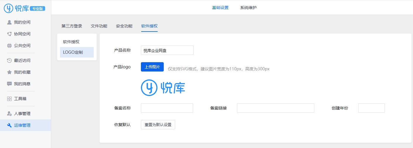 悦库企业网盘支持自定义显示企业 LOGO、网盘名字甚至登录页面背景图,让企业形象更加统一、专业,在日常办公和对外协作中,彰显企业的独特气质。