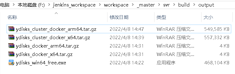 3. 对测试包/发布包进行归档 以悦库流水线为例,执行完成后最终会生成5个不同版本的服务端安装包: